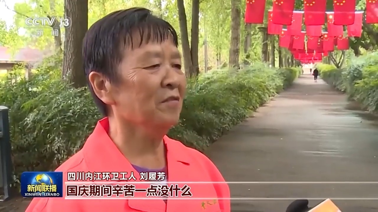 四川內(nèi)江環(huán)衛(wèi)工人 劉履芳:國慶期間辛苦一點(diǎn)沒什么,希望市民過一個(gè)開心、整潔的國慶假期。