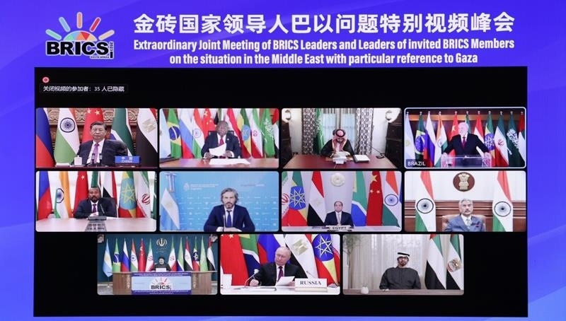 去年11月,金磚國家領(lǐng)導人巴以問題特別視頻峰會召開,與會領(lǐng)導人就應(yīng)對巴以新一輪沖突造成的挑戰(zhàn)并持續(xù)推動巴以問題公正持久解決展開交流,協(xié)調(diào)立場,發(fā)出呼吁,達成共識,并采取積極行動,發(fā)出清晰的正義之聲、和平之聲。
