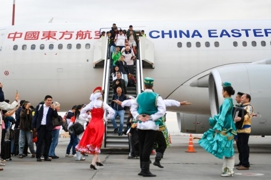 9月28日,東航“上海-喀山”直飛首航航班的旅客抵達(dá)俄羅斯韃靼斯坦共和國喀山國際機(jī)場。新華社記者 曹陽 攝