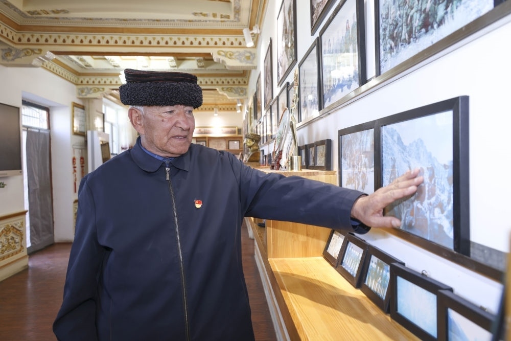 2024年9月15日,在新疆塔什庫爾干塔吉克自治縣提孜那甫鄉(xiāng),巴依卡·凱力迪別克在家中講述護邊往事。新華社發(fā)(姬文志 攝)