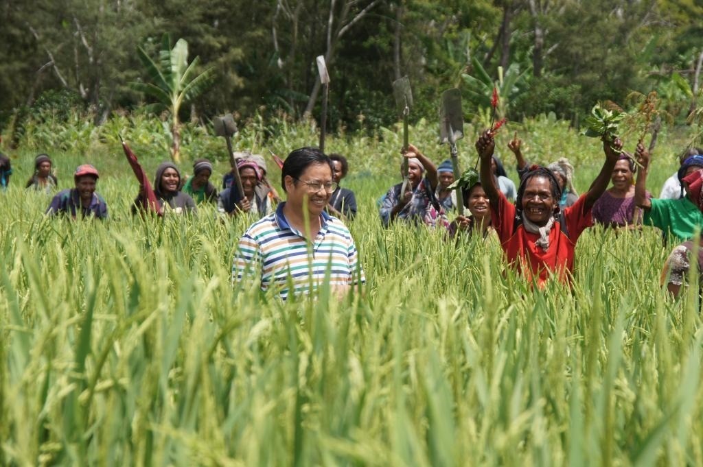 △ 2019年12月17日,首次參與中國援巴新旱稻項目的巴布亞新幾內亞農戶,看到自己種植的旱稻長勢喜人。