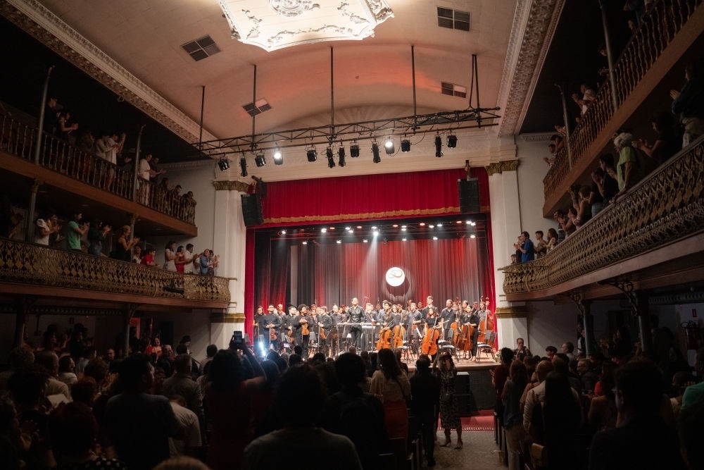 2024年6月3日,在巴西北里奧格蘭德州納塔爾舉行的“慶祝中國巴西建交50周年——巴西東北部中巴音樂巡演(納塔爾場)”音樂會上,觀眾起身為表演者鼓掌。本場音樂會上,中國和巴西經典樂曲相互穿插,讓觀眾贊嘆于兩國音樂之美。