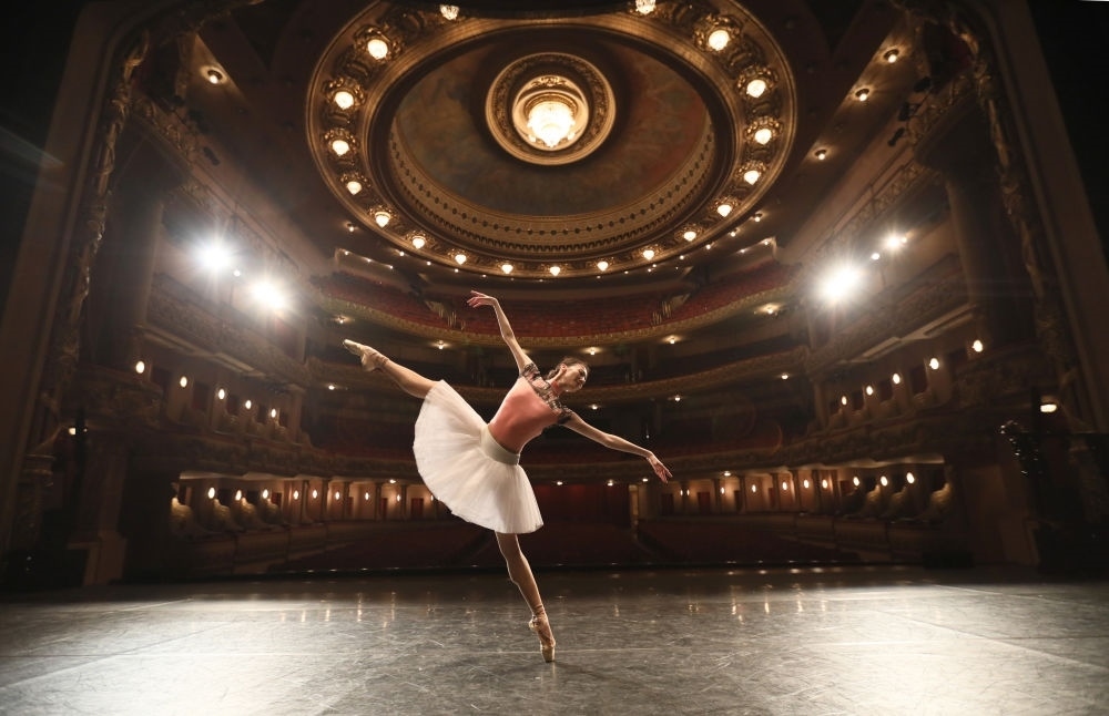 2019年5月24日,中央芭蕾舞團演員方夢穎在巴西里約熱內盧市政劇院排練。中央芭蕾舞團攜《大紅燈籠高高掛》來到巴西,為當?shù)孛癖姭I上帶有濃郁中國元素的精彩表演。