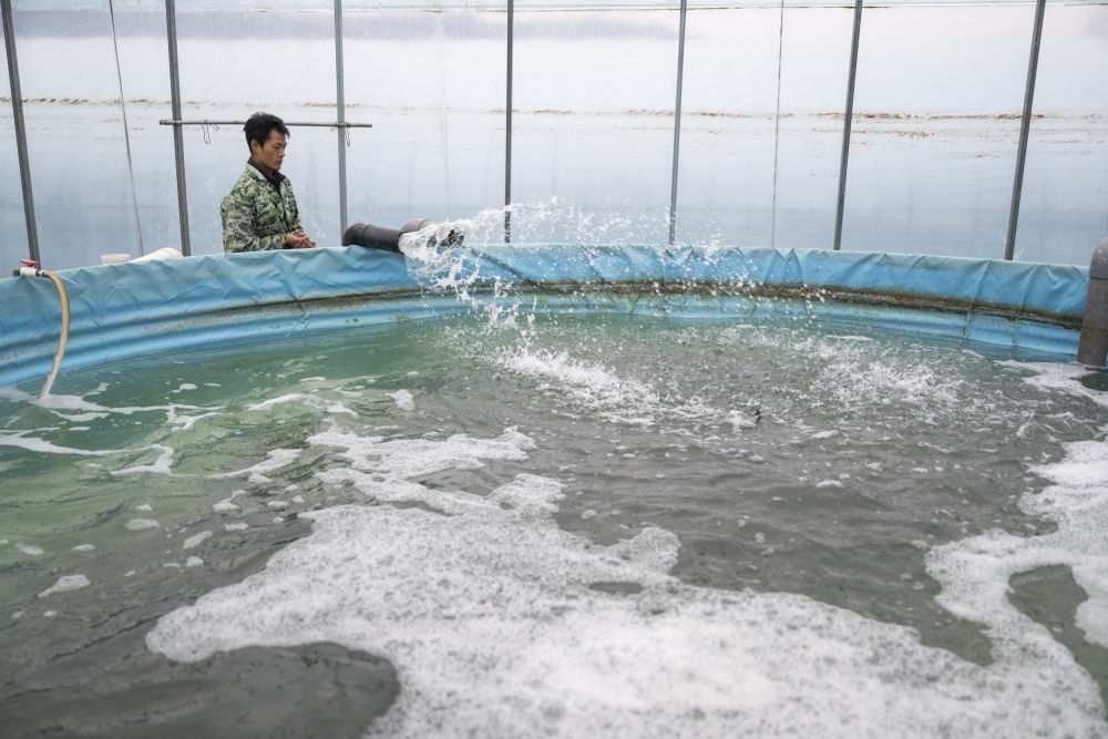 2024年12月8日,湖北農(nóng)發(fā)(丹江口)漁業(yè)科技有限公司工作人員在給魚池放水。品質(zhì)調(diào)控車間內(nèi)的尾水經(jīng)過四級(jí)沉淀池后排入生態(tài)塘凈化處理,后進(jìn)行循環(huán)使用從而減少污染。
