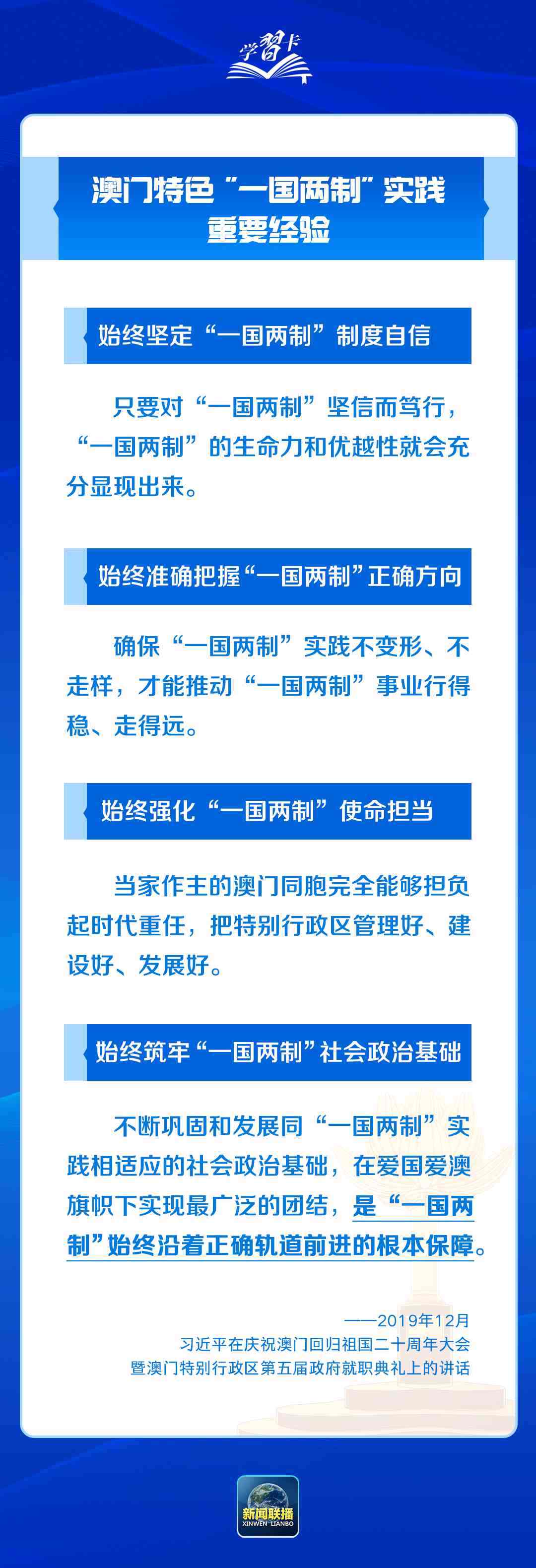 習(xí)近平主席一直心系澳門,為澳門全面準(zhǔn)確、堅(jiān)定不移貫徹“一國(guó)兩制”、保持長(zhǎng)期繁榮穩(wěn)定指明前進(jìn)方向。