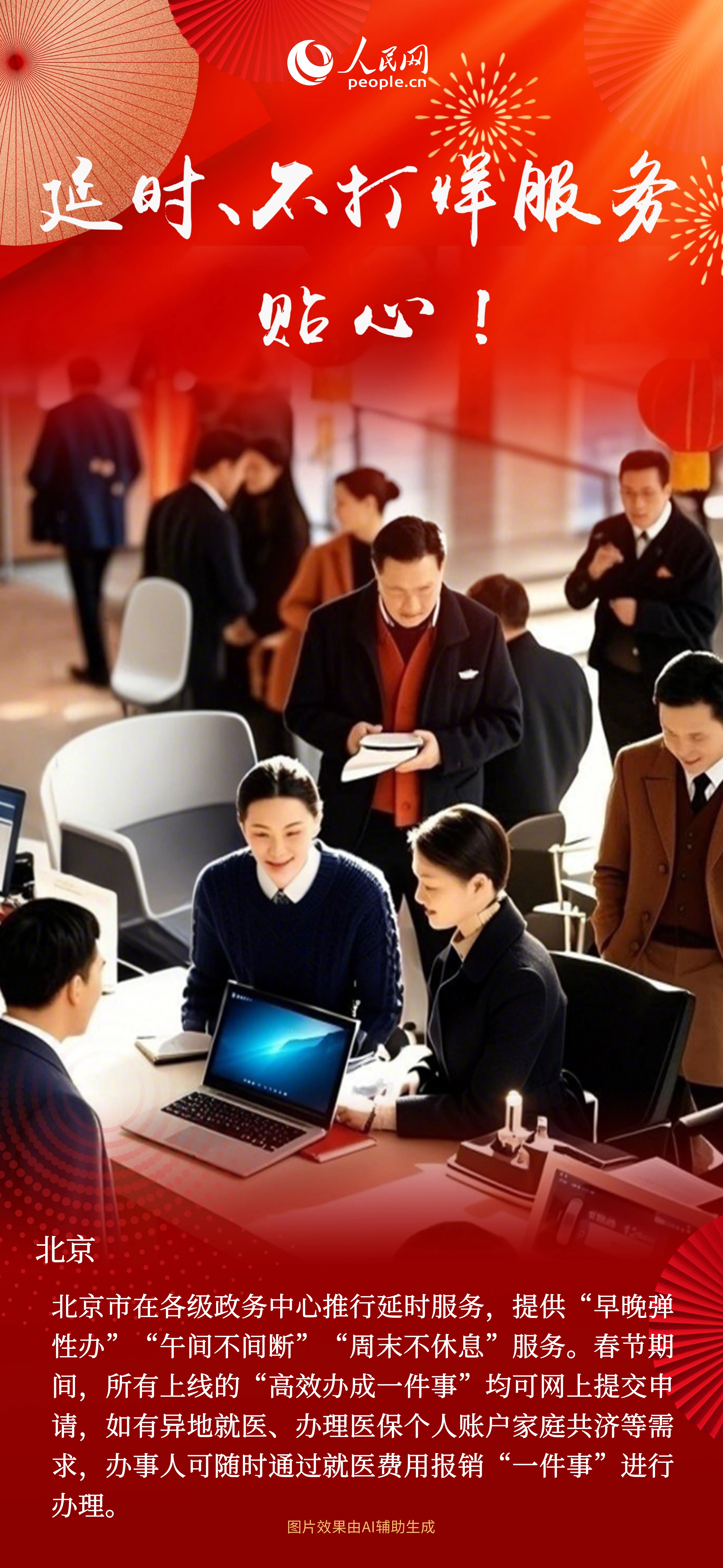 “一件接著一件辦”“這件辦完再下班”“幫辦代辦少操心”.......臨近春節(jié)假期,國(guó)家政務(wù)服務(wù)平臺(tái)上線了2025春節(jié)服務(wù)專(zhuān)區(qū),集合出行、文旅、民生、天氣等多項(xiàng)服務(wù),各地也紛紛推出服務(wù)不打烊、節(jié)日辦事專(zhuān)場(chǎng)等一系列便民舉措。為企業(yè)群眾提供暖心、安心的政務(wù)服務(wù),讓大家過(guò)節(jié)無(wú)憂、辦事不愁。