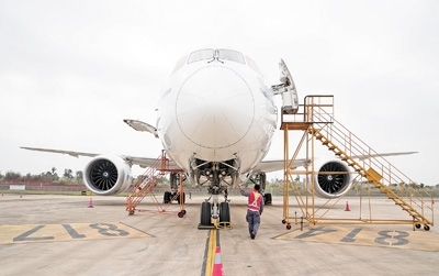 “面前這個大家伙,是來自蒙古航空的波音B787—9飛機,1月中旬飛到海南自貿(mào)港一站式飛機維修產(chǎn)業(yè)基地接受專項維修服務。我們要加緊做好發(fā)動機換發(fā)、專項維修服務和飛機封存等工作。”楊榮川介紹。