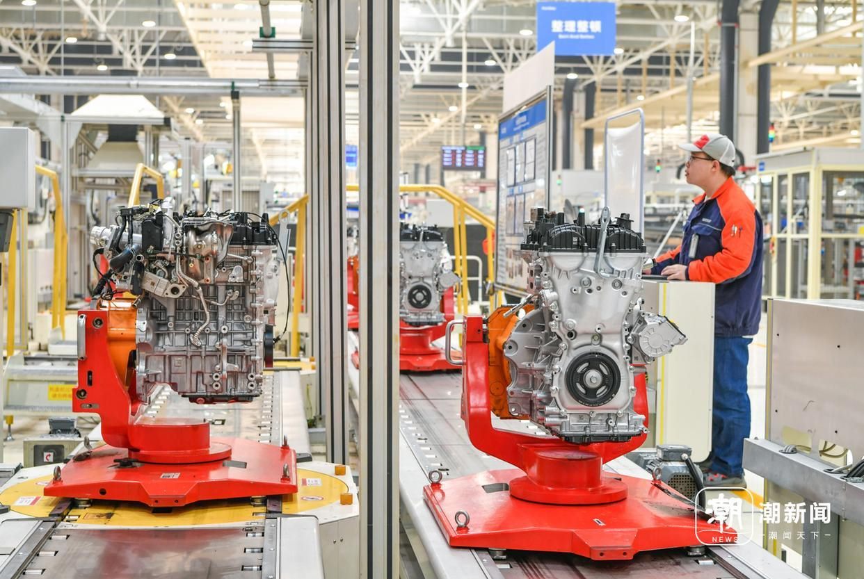 義烏吉利發(fā)動機工廠的生產(chǎn)車間內(nèi),技術工人在智能化裝配流水線上趕制油電混動汽車發(fā)動機的生產(chǎn)訂單。記者 金思成 通訊員 時寬兵 攝