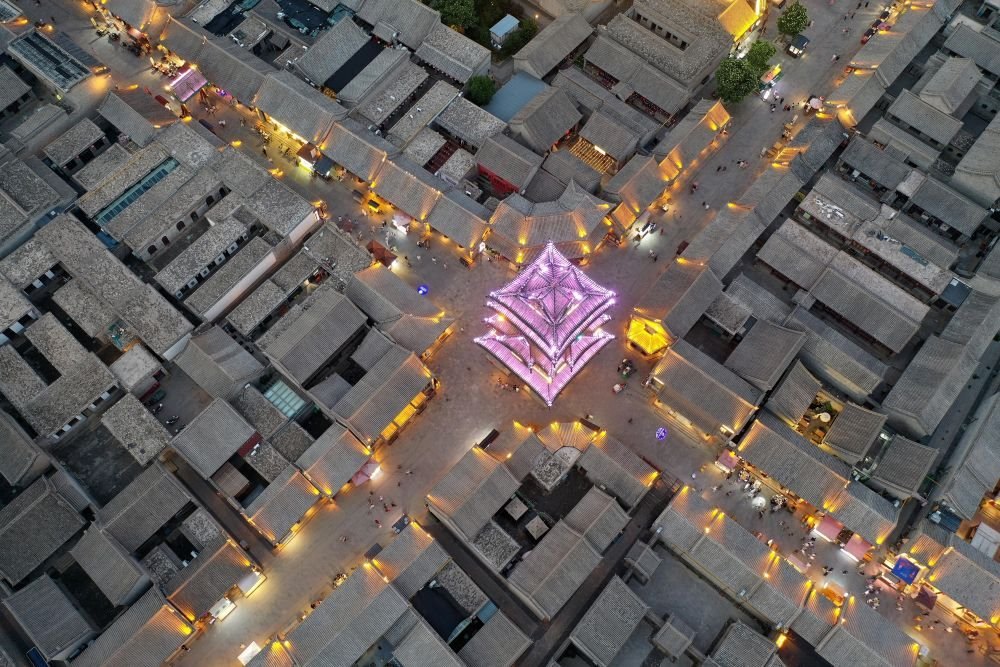 2024年7月17日,游客在太原古縣城游覽(無人機(jī)照片)。