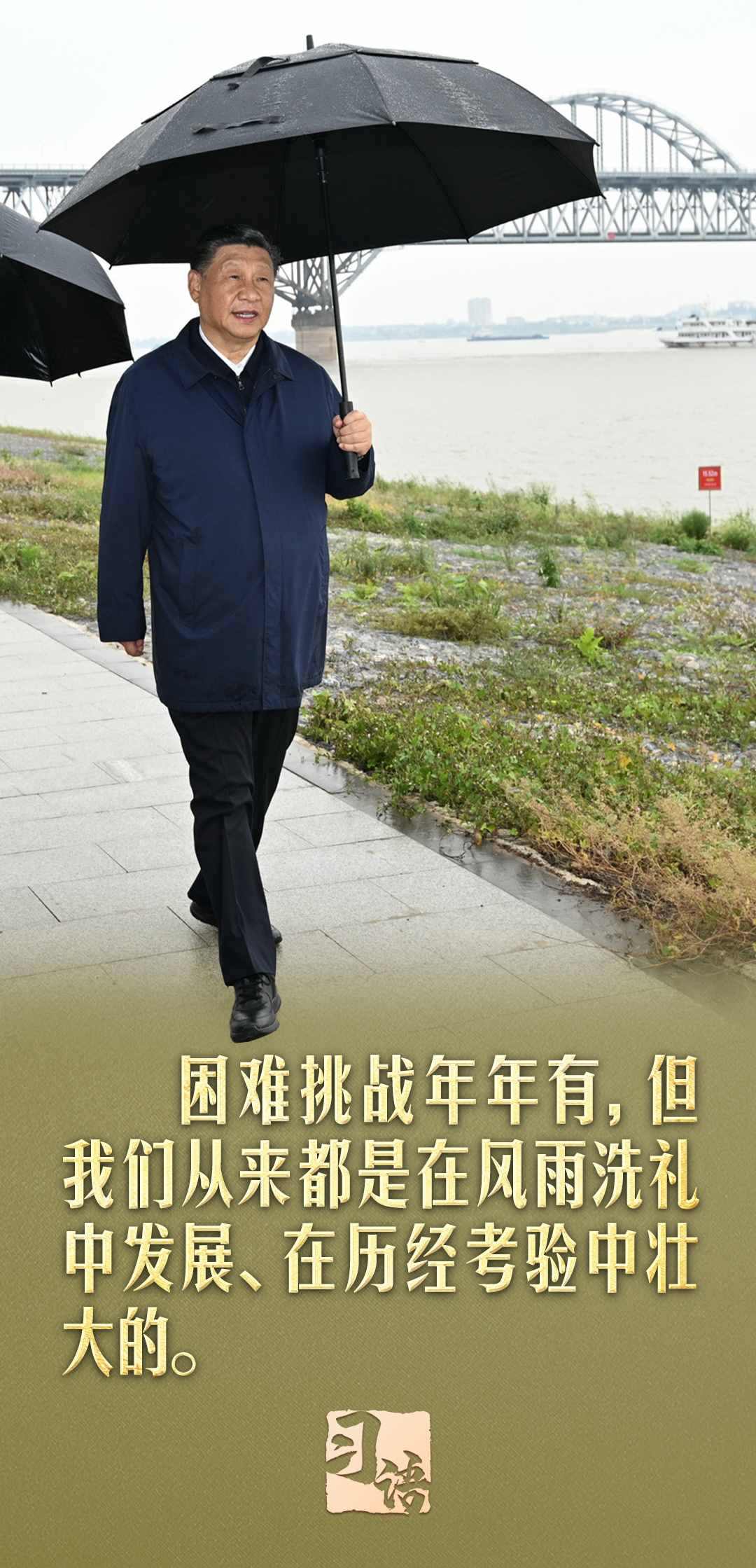 “遵道而行,但到半途須努力;會心不遠(yuǎn),要登絕頂莫辭勞”。在慶祝中華人民共和國成立75周年招待會上,習(xí)近平總書記引用南岳衡山這副對聯(lián)說道:“我們要居安思危、未雨綢繆,緊緊依靠全黨全軍全國各族人民,堅(jiān)決戰(zhàn)勝一切不確定難預(yù)料的風(fēng)險(xiǎn)挑戰(zhàn)。任何困難都無法阻擋中國人民前進(jìn)的步伐!”