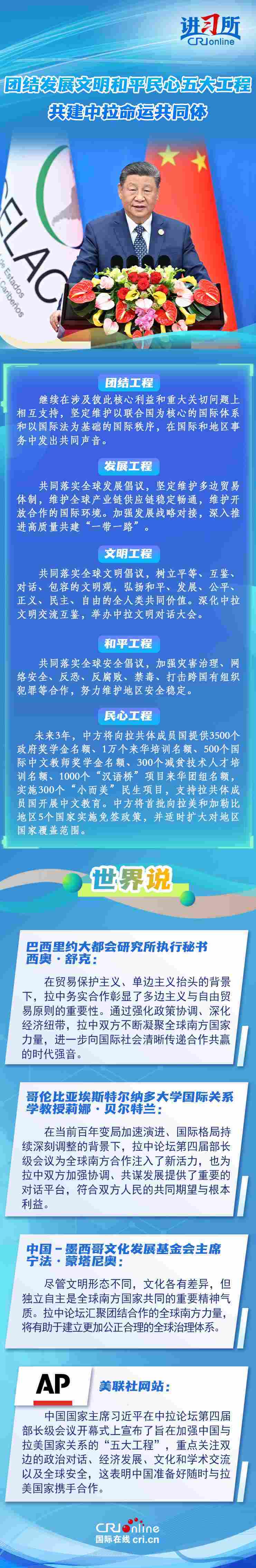 5月13日,中國(guó)國(guó)家主席習(xí)近平出席中拉論壇第四屆部長(zhǎng)級(jí)會(huì)議開幕式并發(fā)表主旨講話。習(xí)近平宣布,中方愿同拉方攜手啟動(dòng)五大工程,共謀發(fā)展振興,共建中拉命運(yùn)共同體。他強(qiáng)調(diào),無論國(guó)際風(fēng)云如何變化,中國(guó)始終做拉美和加勒比國(guó)家的好朋友、好伙伴。