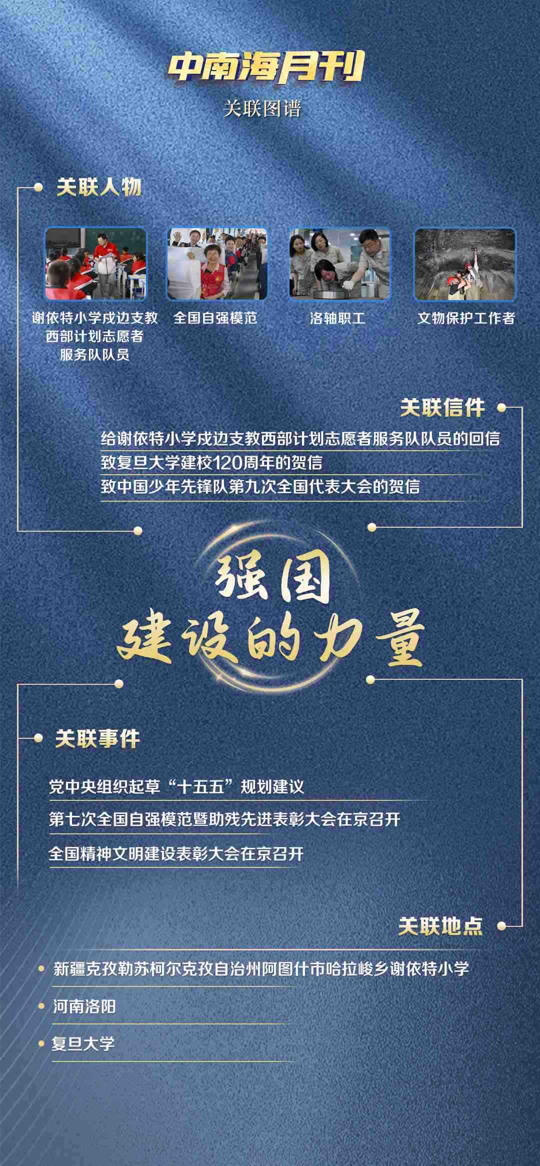 青年是強國建設的先鋒隊、突擊隊。給謝依特小學戍邊支教西部計劃志愿者服務隊隊員回信,總書記為他們點贊,并鼓勵廣大青年“厚植家國情懷,練就過硬本領”,“為中國式現(xiàn)代化建設貢獻青春力量”;致信祝賀復旦大學建校120周年,總書記希望復旦大學“深化教育科研改革,推動科技自主創(chuàng)新和人才自主培養(yǎng)良性互動”,不斷提升服務國家重大戰(zhàn)略和區(qū)域經(jīng)濟社會發(fā)展能力。