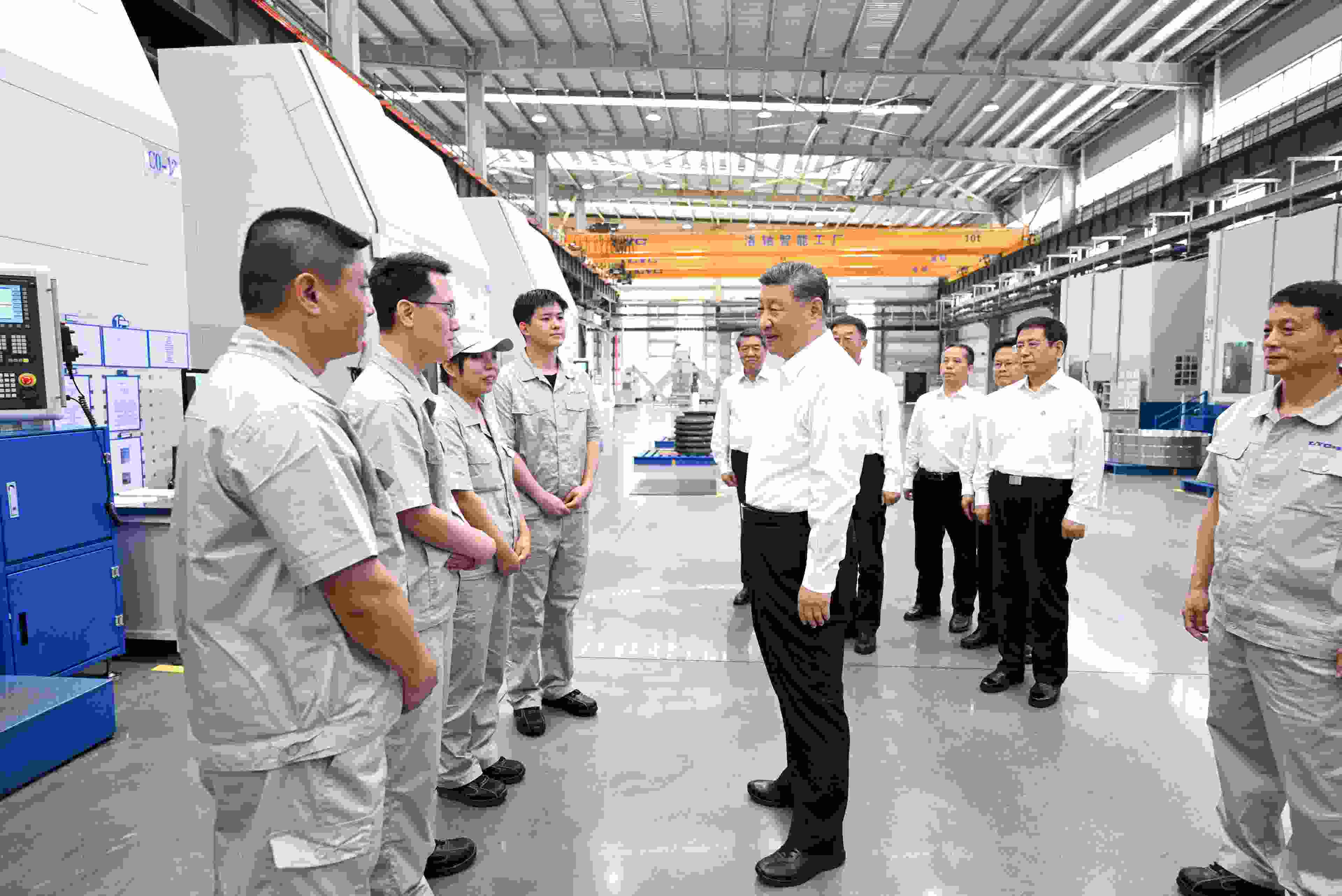 △5月19日,習近平總書記在河南洛陽軸承集團股份有限公司智能工廠考察時,同企業(yè)職工親切交流。