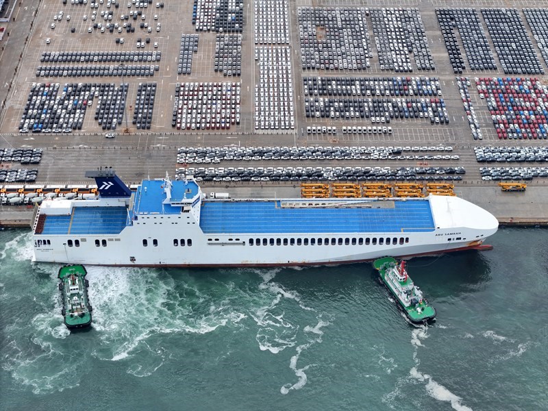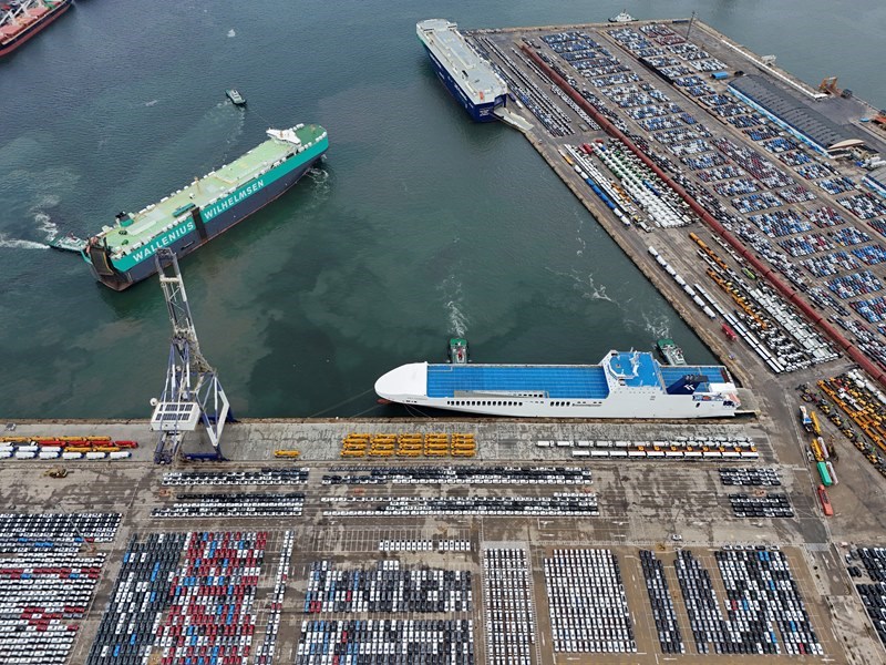 連日來(lái),在山東港口煙臺(tái)港,大批出口車輛集結(jié)待發(fā),汽車運(yùn)輸船穿梭往來(lái),一派繁忙景象。今年1—5月,煙臺(tái)港完成商品車運(yùn)量29.6萬(wàn)輛。目前,煙臺(tái)港已實(shí)現(xiàn)全球主要商品車碼頭全覆蓋、全聯(lián)通,形成“以航線帶貨源、以貨源促航線”的良性循環(huán)。