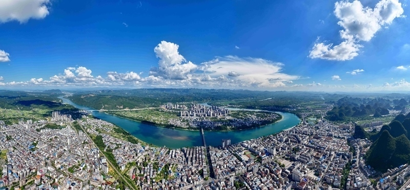 8月30日,在廣西梧州市萬秀區(qū)的西江航道上,船只在秋日晴空下往來穿梭(無人機照片)。