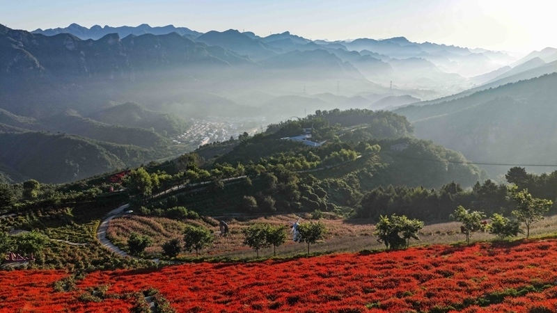 9月7日在河北省承德市興隆縣南天麗景風景區(qū)拍攝的秋日晨景(無人機照片)。