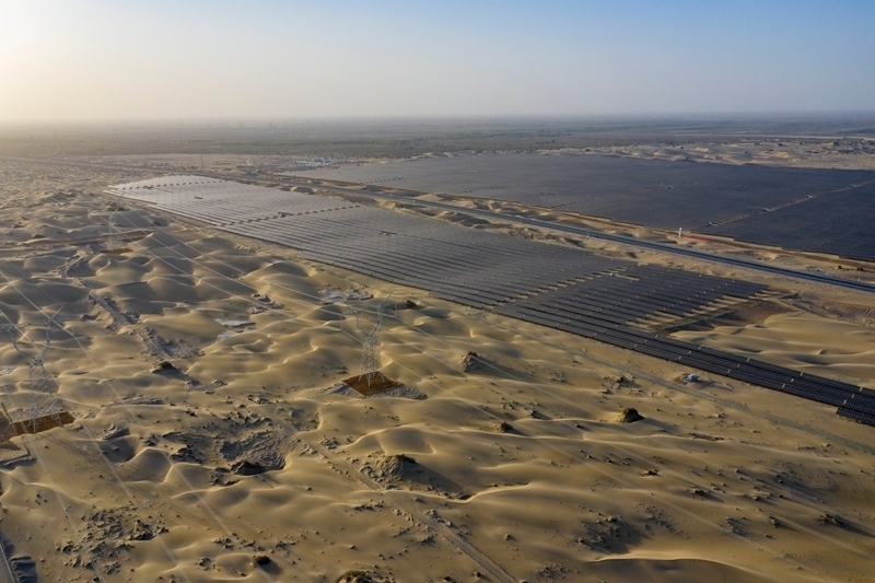 昔日的戈壁荒漠,如今由太陽(yáng)能光伏板匯聚成“藍(lán)色海洋”,由風(fēng)力發(fā)電機(jī)組成“白色森林”,正孕育著無(wú)限“風(fēng)光”。