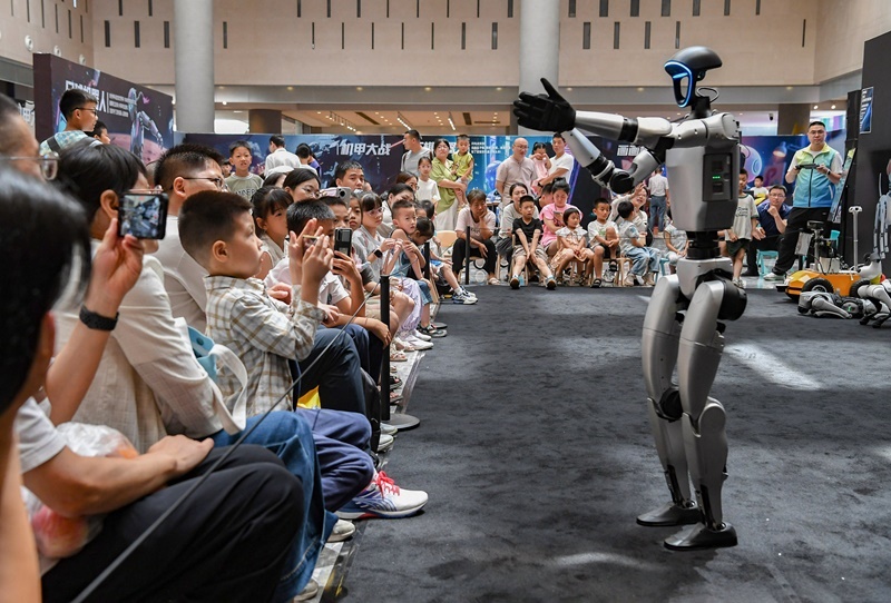 當(dāng)日,浙江省金華市金華之光文化廣場科技館舉辦AI智能機(jī)器人科普展,吸引了許多家長帶著小朋友與人形機(jī)器人、智能機(jī)器狗、下棋機(jī)器人、足球機(jī)器人等互動(dòng),沉浸式感受人工智能技術(shù)的魅力,樂享暑期生活。