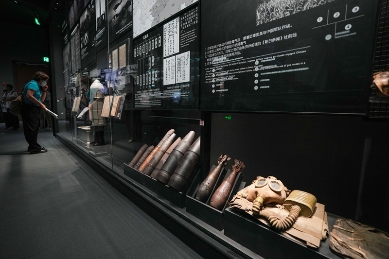7月8日,在中國人民抗日戰(zhàn)爭紀(jì)念館《為了民族解放與世界和平》主題展覽上,參觀者在展示日本侵略者實(shí)施細(xì)菌戰(zhàn)和化學(xué)戰(zhàn)暴行的區(qū)域參觀。