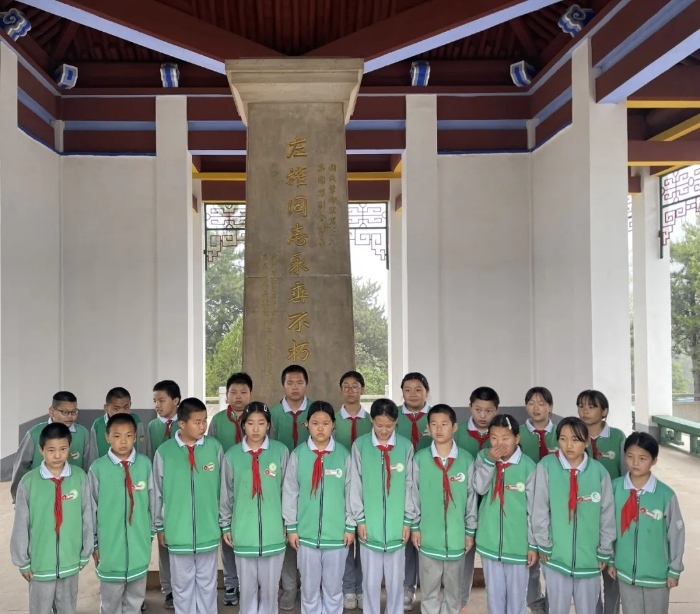 2025年5月23日,澤城九年一貫制學校五、六年級的學生舉行活動紀念左權將軍。(新華網(wǎng) 于楊 攝)