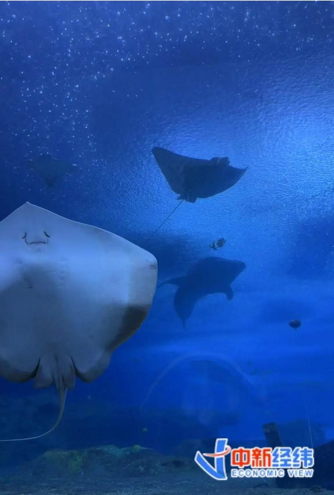 在海底區(qū),小林感到自己仿佛來到了海底世界的IMAX影廳,抬頭就能看到各種海底生物在頭上游過。晚上工作人員還會(huì)撤去警戒線,讓他們能與動(dòng)物更加貼近?!澳莻€(gè)時(shí)候的體驗(yàn),就是‘藍(lán)調(diào)時(shí)刻’,幽靜又神秘,抬頭就能看到鯨鯊巨物從頭頂游過。夜深一些,還能看到有小魚沉底睡覺休息?!毙×终f道。