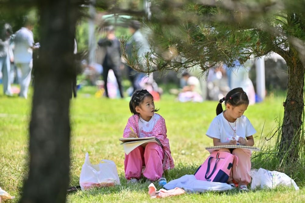 7月22日,兩名小學(xué)生在青海省大通縣邊麻溝花海景區(qū)內(nèi)參加暑期美術(shù)寫生研學(xué)活動。新華社記者 孫瑞博 攝