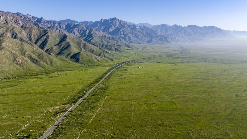 賀蘭山下草木茂盛(7月29日攝,無人機(jī)照片)。