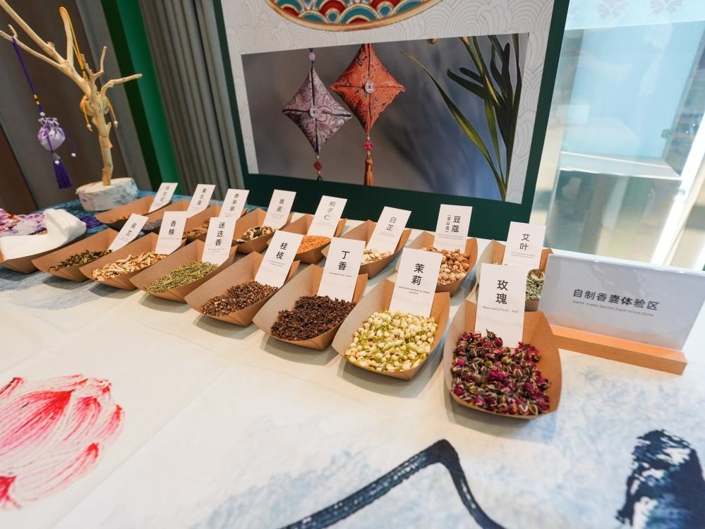 這是8月3日在成都世運會運動員村A區(qū)中醫(yī)藥體驗館拍攝的自制香囊體驗區(qū)。新華社記者 王曦 攝