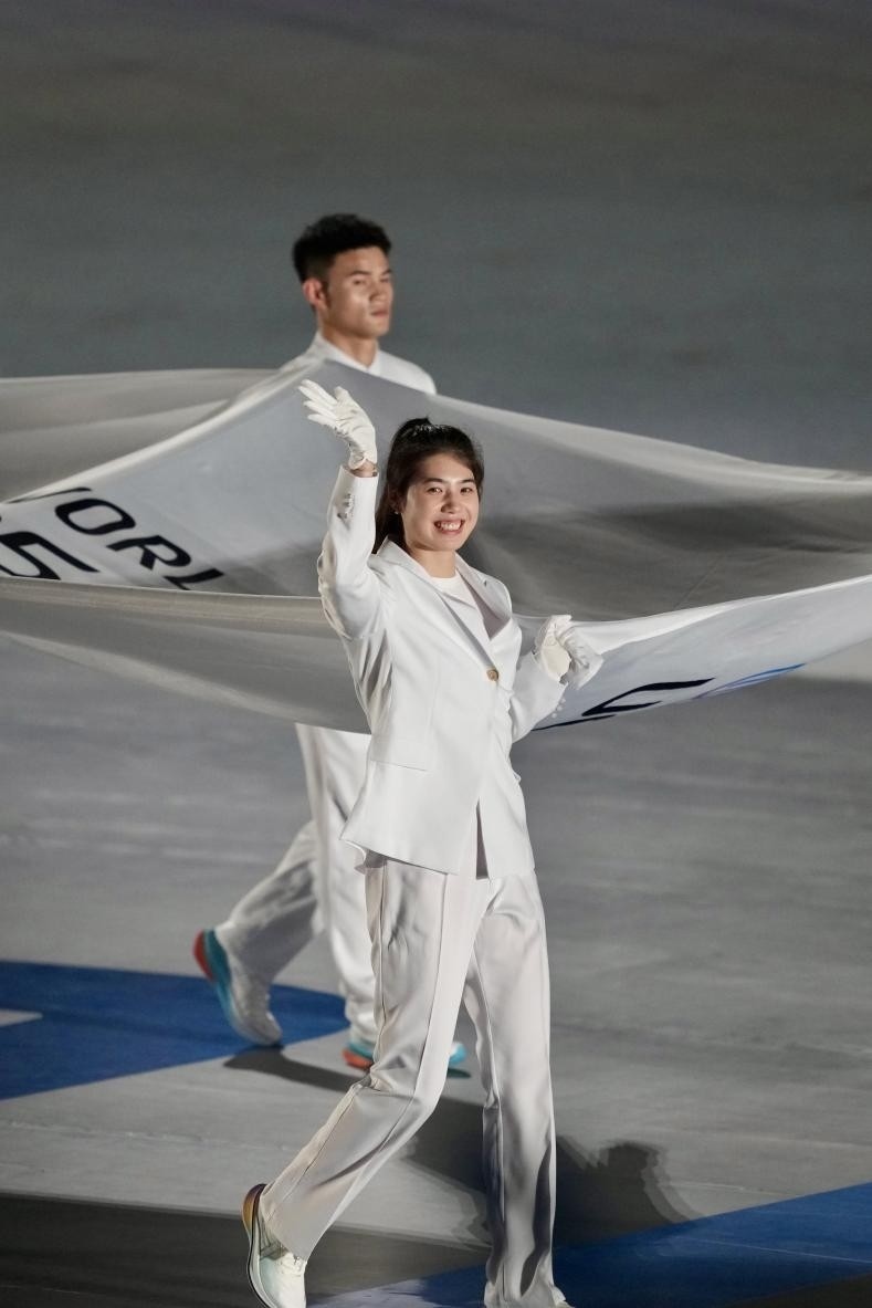 開(kāi)幕式在《繽紛之約》表演中拉開(kāi)序幕,街舞與輪滑、滑板、啦啦操等運(yùn)動(dòng)元素碰撞出青春火花激情開(kāi)場(chǎng)。倒計(jì)時(shí)焰火組成的篆體“成都”字樣,將傳統(tǒng)文化與現(xiàn)代科技巧妙結(jié)合。來(lái)自全球的運(yùn)動(dòng)員在吉祥物“蜀寶”“錦仔”的歡迎下入場(chǎng),手持融入蜀繡、漆藝等非遺工藝的引導(dǎo)牌,踏上榮耀之路。