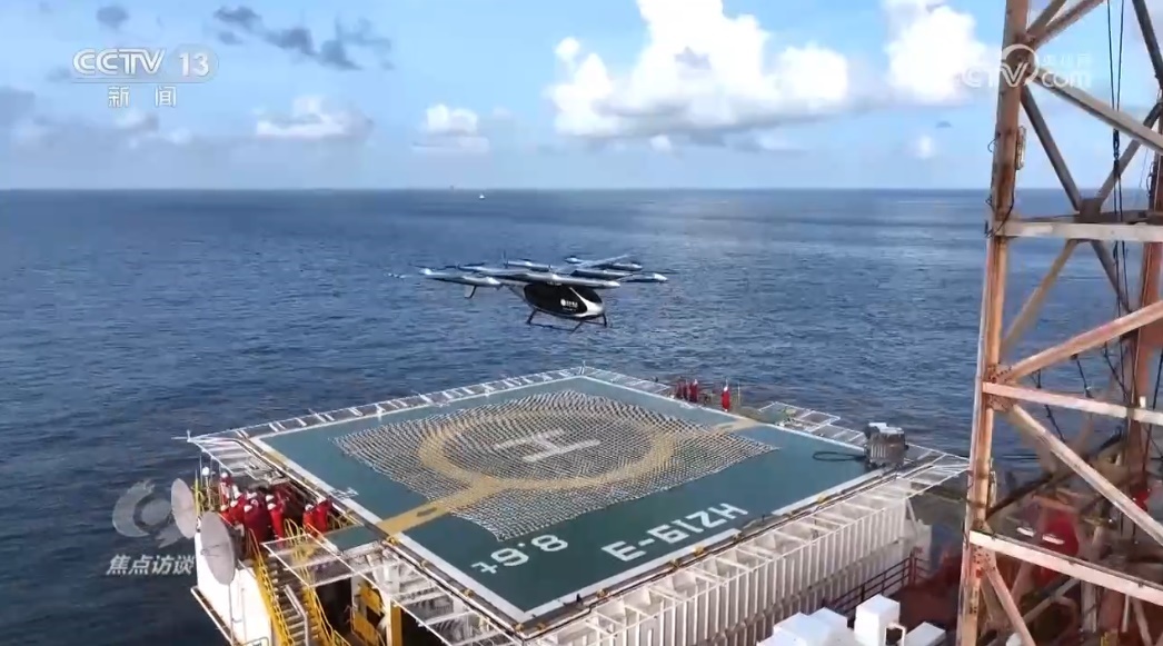 這天,一架兩噸重的電動垂直起降航空器搭載著水果和藥品,從深圳市區(qū)起飛,歷經(jīng)58分鐘的跨海域飛行,抵達距深圳海岸線150公里的海上油氣平臺,為平臺工作人員送去物資。