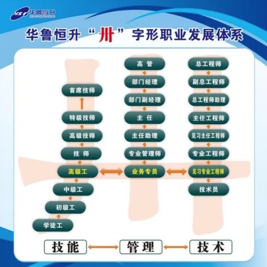 華魯恒升這個“卅”字,正是湖北總工會“卅”字形職業(yè)發(fā)展體系的縮影。“技能-技術-管理”三條事業(yè)路徑既能縱向發(fā)展又能橫向連接;既可以在任一賽道向上攀登,又能橫向貫通跨領域成長成才。