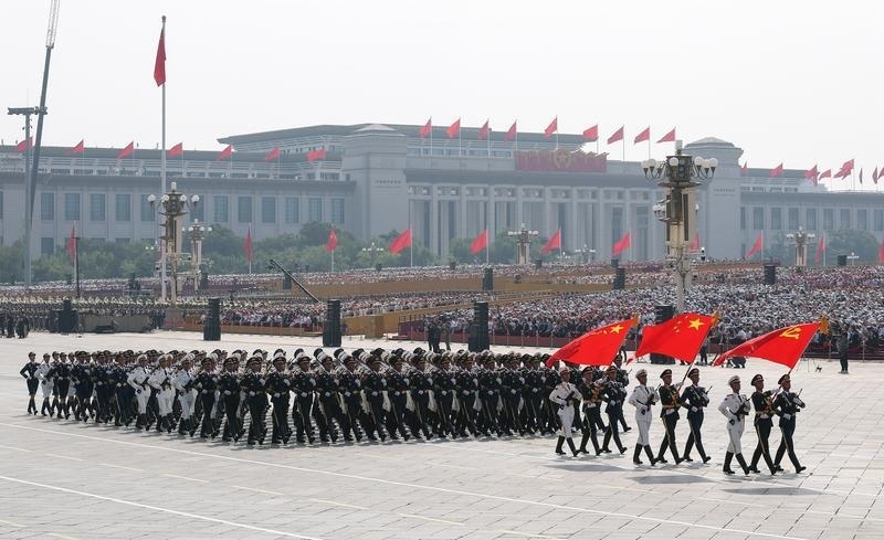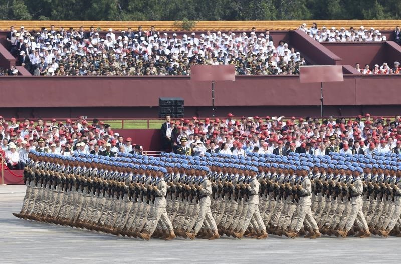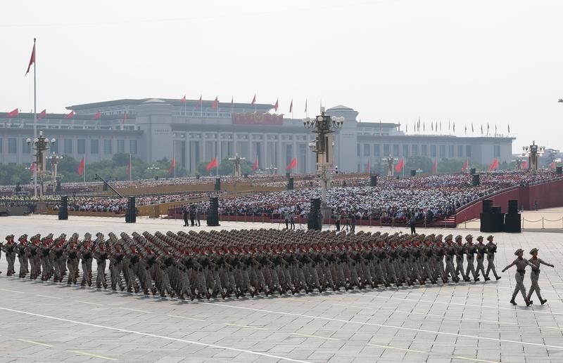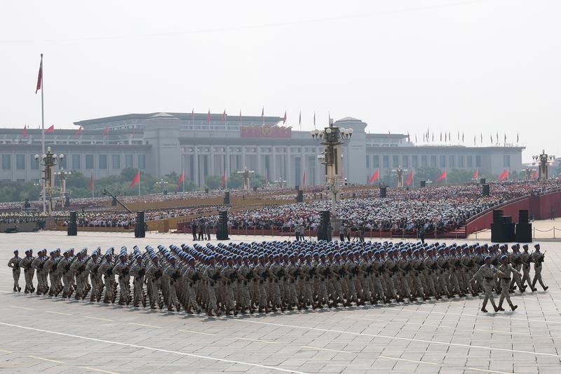9月3日,紀(jì)念中國(guó)人民抗日戰(zhàn)爭(zhēng)暨世界反法西斯戰(zhàn)爭(zhēng)勝利80周年大會(huì)在北京隆重舉行。這是徒步方隊(duì)接受檢閱。