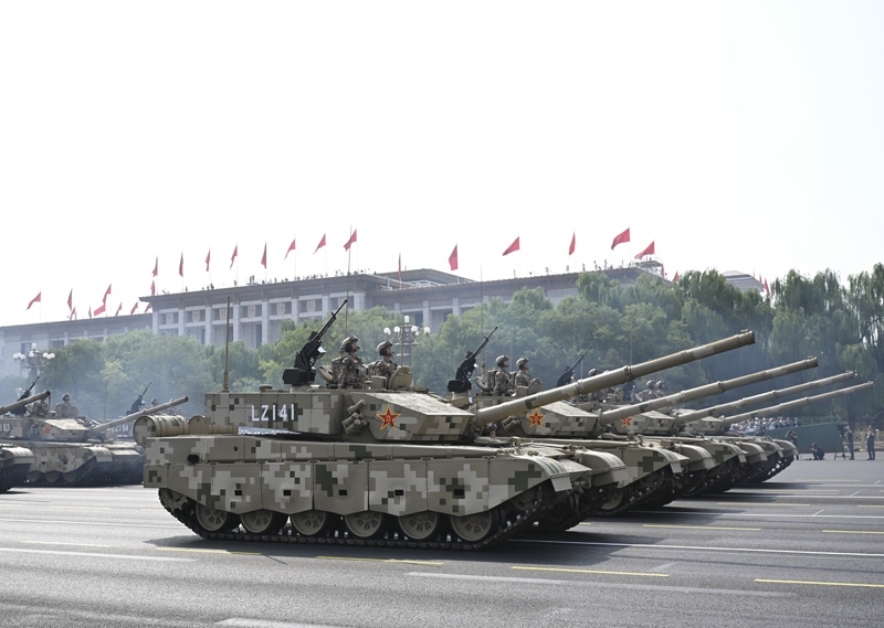 9月3日,紀念中國人民抗日戰(zhàn)爭暨世界反法西斯戰(zhàn)爭勝利80周年大會在北京隆重舉行。這是民兵方隊接受檢閱。
