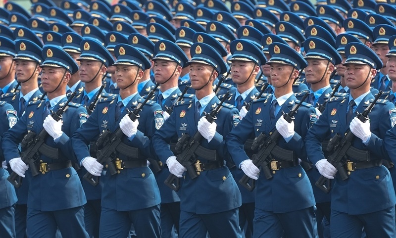 9月3日,紀(jì)念中國(guó)人民抗日戰(zhàn)爭(zhēng)暨世界反法西斯戰(zhàn)爭(zhēng)勝利80周年大會(huì)在北京隆重舉行。這是徒步方隊(duì)接受檢閱。