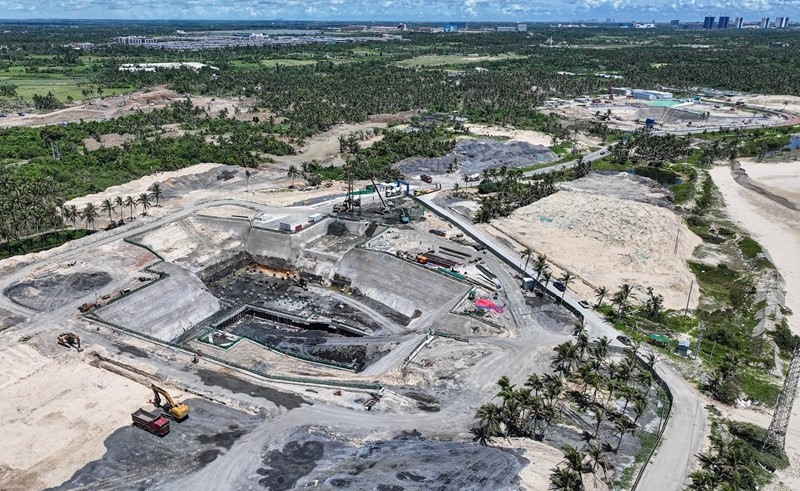 9月5日拍攝的建設(shè)中的海南商業(yè)航天發(fā)射場二期項目,遠(yuǎn)處是海南商業(yè)航天發(fā)射場(一期)和文昌航天發(fā)射場(無人機(jī)照片)。