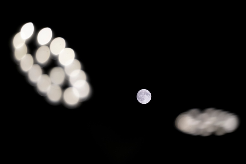 10月6日在黑龍江省哈爾濱大劇院拍攝的中秋滿(mǎn)月(無(wú)人機(jī)照片)。