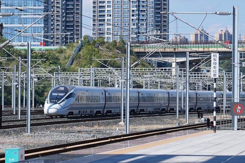 10月10日,一輛列車駛離貴陽北站。