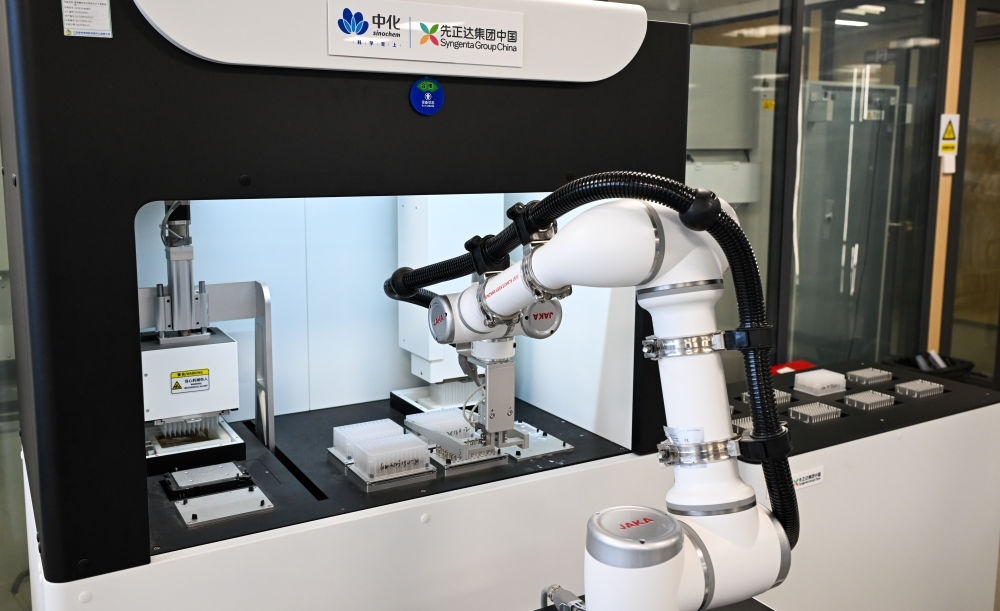這是9月26日在海南三亞崖州灣科技城中國種子集團有限公司拍攝的全自動高通量核酸提取平臺。新華社記者 楊冠宇 攝