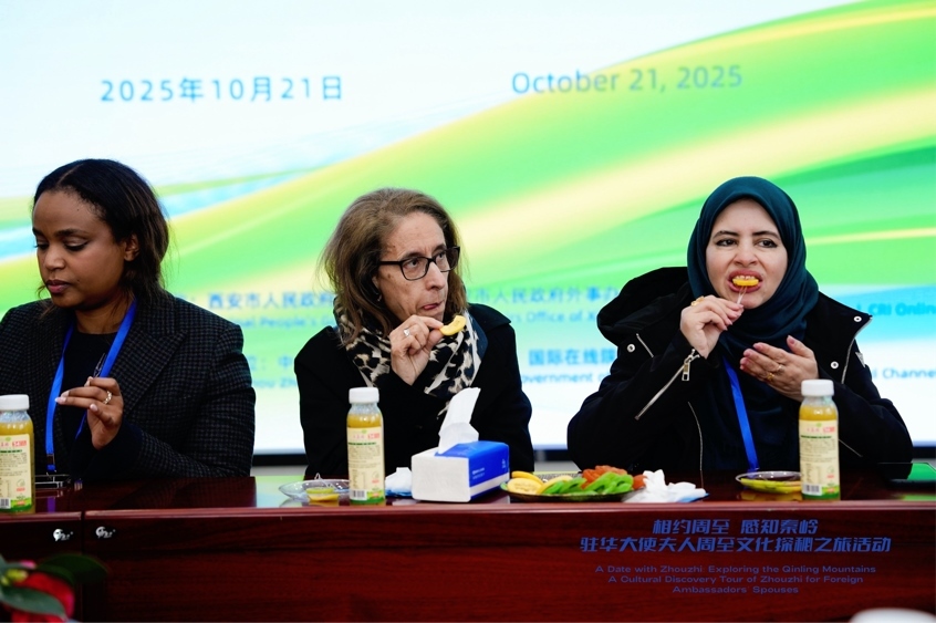 10月21日,秋光漫過秦嶺北麓的田野,來自土庫(kù)曼斯坦、約旦、巴林、科摩羅、也門、薩摩亞、馬耳他、埃塞俄比亞、土耳其、比利時(shí)、摩洛哥、孟加拉國(guó)、烏茲別克斯坦等13個(gè)國(guó)家的駐華大使夫人,走進(jìn)西安市周至縣周一村獼猴桃產(chǎn)業(yè)基地。這片被秦嶺滋養(yǎng)的土地,不僅是秦嶺生態(tài)饋贈(zèng)的“甜蜜樣本”,更成為大使夫人們探尋中國(guó)鄉(xiāng)村產(chǎn)業(yè)振興路徑、觸摸“一帶一路”農(nóng)業(yè)合作潛力的鮮活載體。