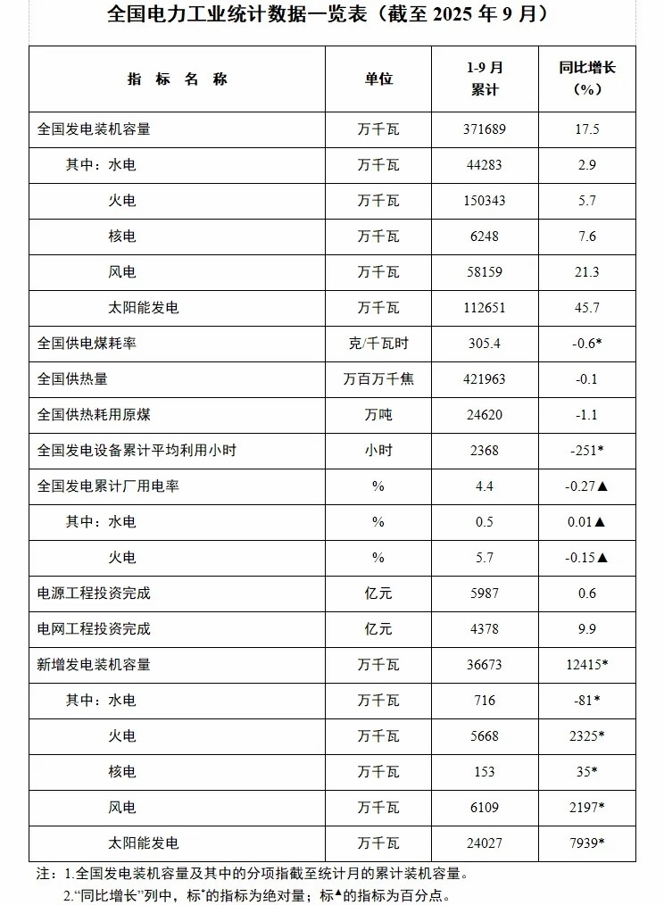 據(jù)“國家能源局”微信公眾號消息,10月26日,國家能源局發(fā)布1-9月份全國電力工業(yè)統(tǒng)計(jì)數(shù)據(jù)。