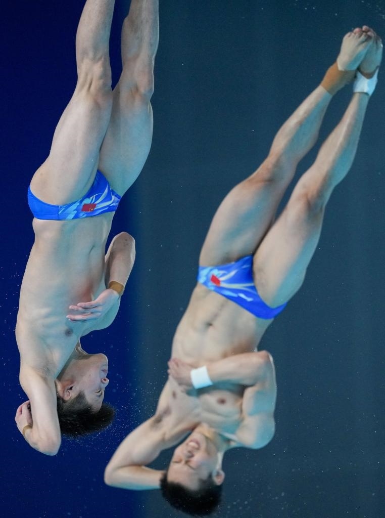 “老帶新”優(yōu)勢(shì)在男子團(tuán)體雙人10米跳臺(tái)項(xiàng)目中也得以體現(xiàn)。今年迎來職業(yè)生涯巔峰的朱子鋒搭檔老將陳艾森代表廣東隊(duì)拿下第一;奧運(yùn)冠軍楊昊則聯(lián)袂18歲的白鈺鳴為陜西隊(duì)拿下該項(xiàng)目第二。