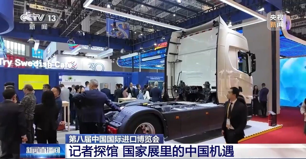 我的AI眼鏡第一時(shí)間就捕捉到了這個(gè)“大塊頭”,放眼望去,整個(gè)國(guó)家展里沒(méi)有比它還大件的展品了。這輛高端重卡車(chē)型來(lái)自瑞典,是享有“公路之王”美譽(yù)的瑞典企業(yè)斯堪尼亞帶來(lái)的重型運(yùn)輸領(lǐng)域的最新成果。別看它塊頭大,新技術(shù)賦予了它高效節(jié)能的特點(diǎn),是今年國(guó)家展里最吸睛的展品之一。