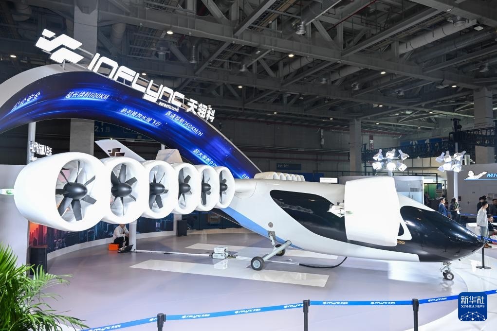 11月6日在進(jìn)博會汽車及智慧出行展區(qū)天翎科展臺拍攝的L600全尺寸傾轉(zhuǎn)涵道翼eVTOL。這是該產(chǎn)品全球首發(fā)。