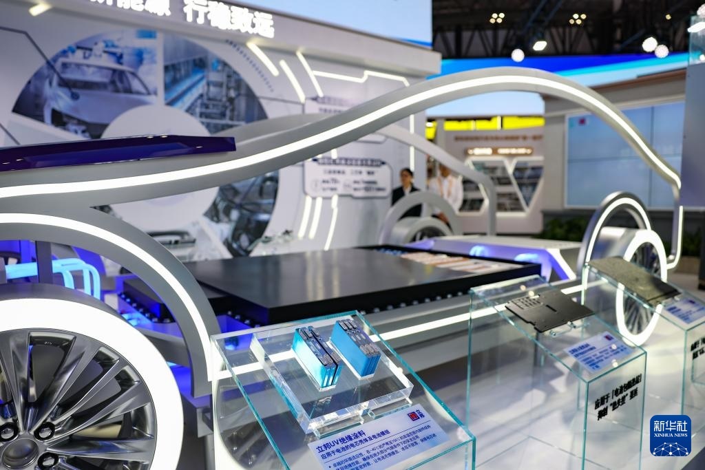 11月6日在進(jìn)博會技術(shù)裝備展區(qū)立邦展臺拍攝的“新能源動力電池包涂裝解決方案”展示。這是該方案在中國首發(fā)。