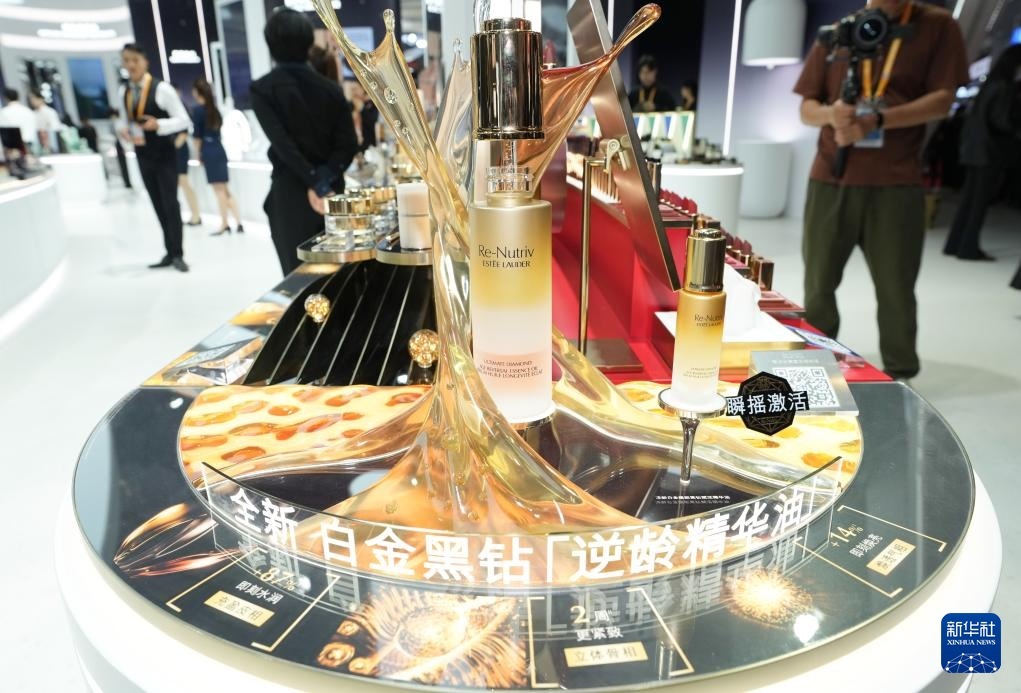11月6日在進(jìn)博會消費品展區(qū)拍攝的雅詩蘭黛白金黑鉆逆齡精華油。這是該產(chǎn)品在中國首發(fā)。