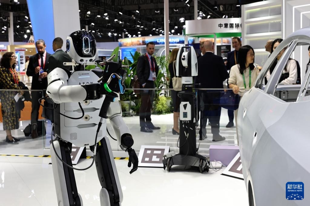 11月5日,一個??怂箍礎(chǔ)EON工業(yè)人形機(jī)器人在展臺上進(jìn)行三維掃描作業(yè)演示,這也是該型號機(jī)器人工業(yè)自動化應(yīng)用場景的中國首展。