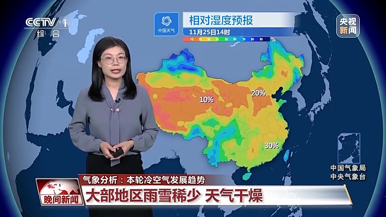冷空氣帶來的雨雪并不多,而且在偏北風吹拂之下,天氣會非常干燥。像是西北華北等地,午后的相對濕度可能只有20%左右,局部地區(qū)甚至不足10%,就連南方相對濕度也只有30%上下,所以整體都會是比較干燥的狀態(tài),大家要及時補充水分,并且注意用火安全。