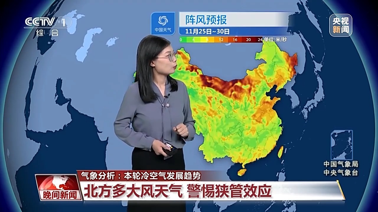 冷空氣帶來的大風比較頻繁,尤其是25日、26日以及29日前后,從西北到華北黃淮會陸續(xù)刮起5至7級的風,陣風可以達到8到9級,尤其是會出現(xiàn)狹管效應的區(qū)域,風力會更大。