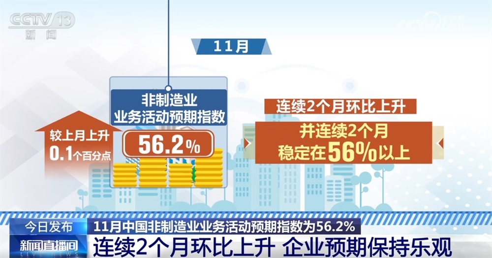 11月中國非制造業(yè)商務(wù)活動(dòng)指數(shù)為49.5%:金融活動(dòng)和新動(dòng)能表現(xiàn)良好 企業(yè)預(yù)期樂觀