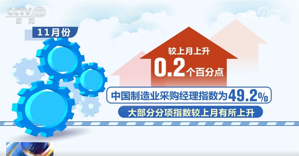 11月份中國制造業(yè)采購經(jīng)理指數(shù)為49.2%,較上月上升0.2個(gè)百分點(diǎn),大部分分項(xiàng)指數(shù)較上月有所上升。
